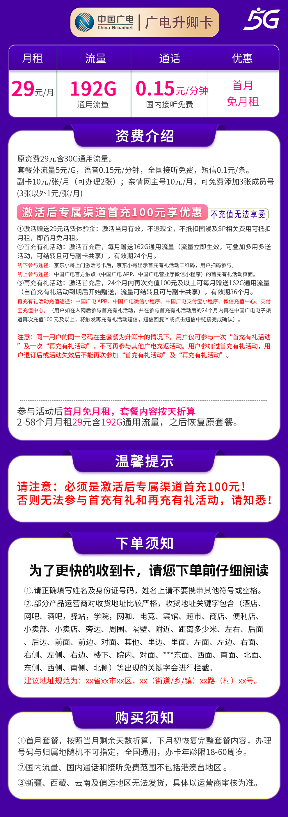 广电升期卡19元192G【发全国】