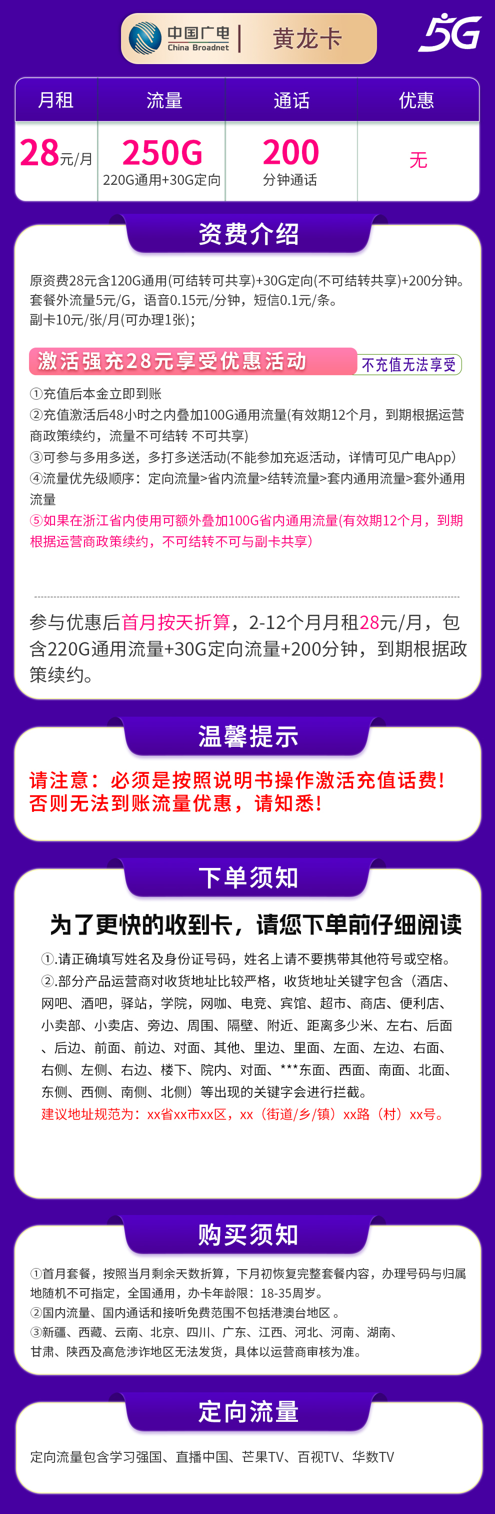 G2广电双龙卡24元150G通用+150分钟通话【发全国】